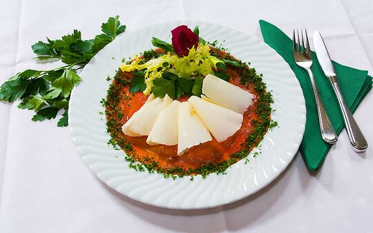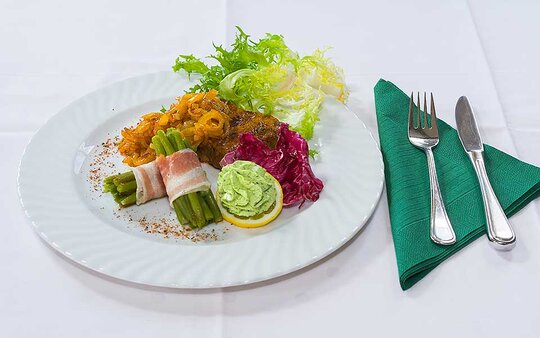 Ausgewogene deutsche Küche mit der Frische die Sie schmecken werden. Aus den ausgesuchten Zutaten bereiten wir Ihnen eine saisonal geprägte Speiseauswahl mit frischem deutschen Spargel und Lammspezialitäten im Frühjahr und im Sommer sowie frische Pfifferlinge, Wildgerichte und deftigen Grünkohl im Herbst und Winter. Dazu kommt ab Oktober jeden Jahres unser traditionelles Gänseessen.